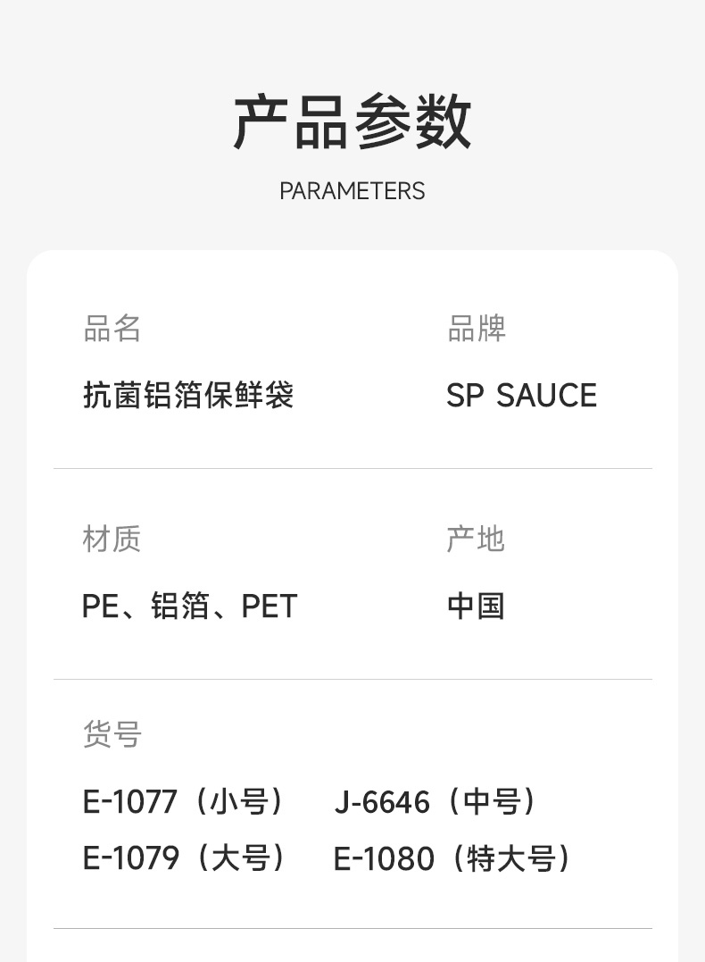 材质:PE+铝箔+PET