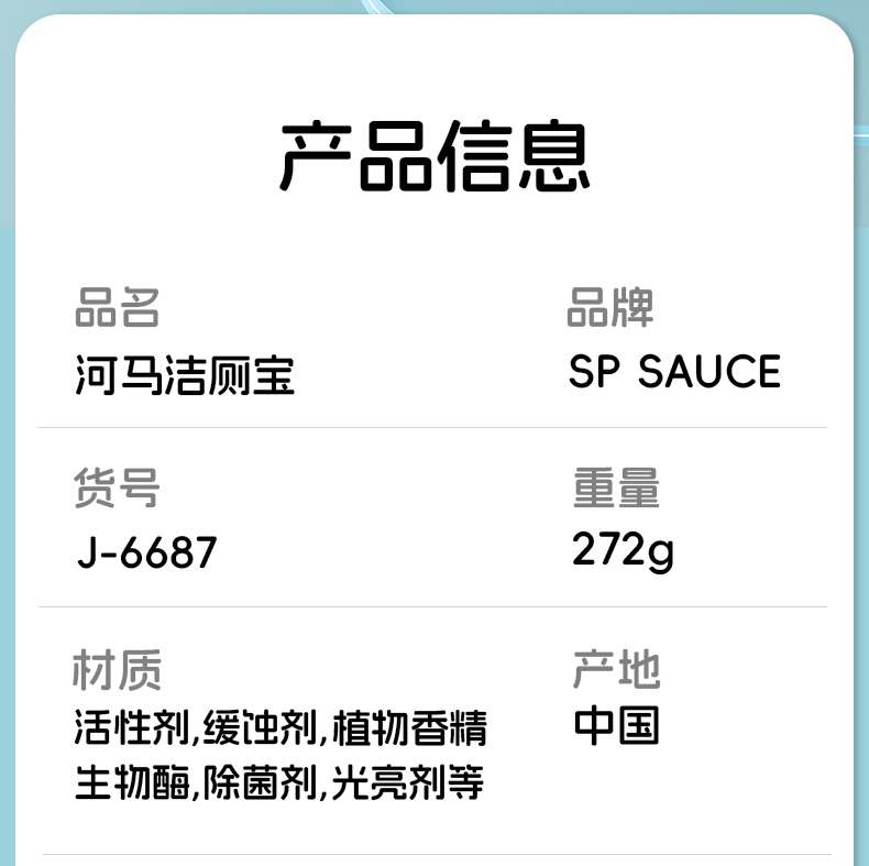 材质:活性剂,缓蚀剂,植物香精,生物酶,除菌剂,光亮剂等