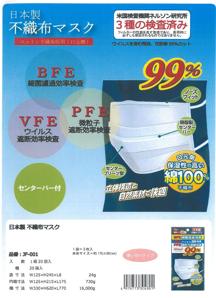高机能卫生口罩(三枚入) 036-JF-001