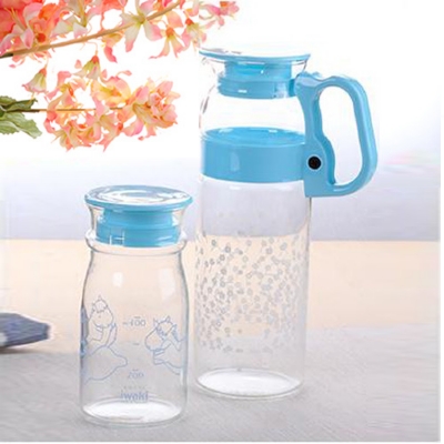 怡万家iwaki耐热玻璃 臻品耐热冷水壶 梦幻蓝亲子款二件套 IW-CT-CS-2BL