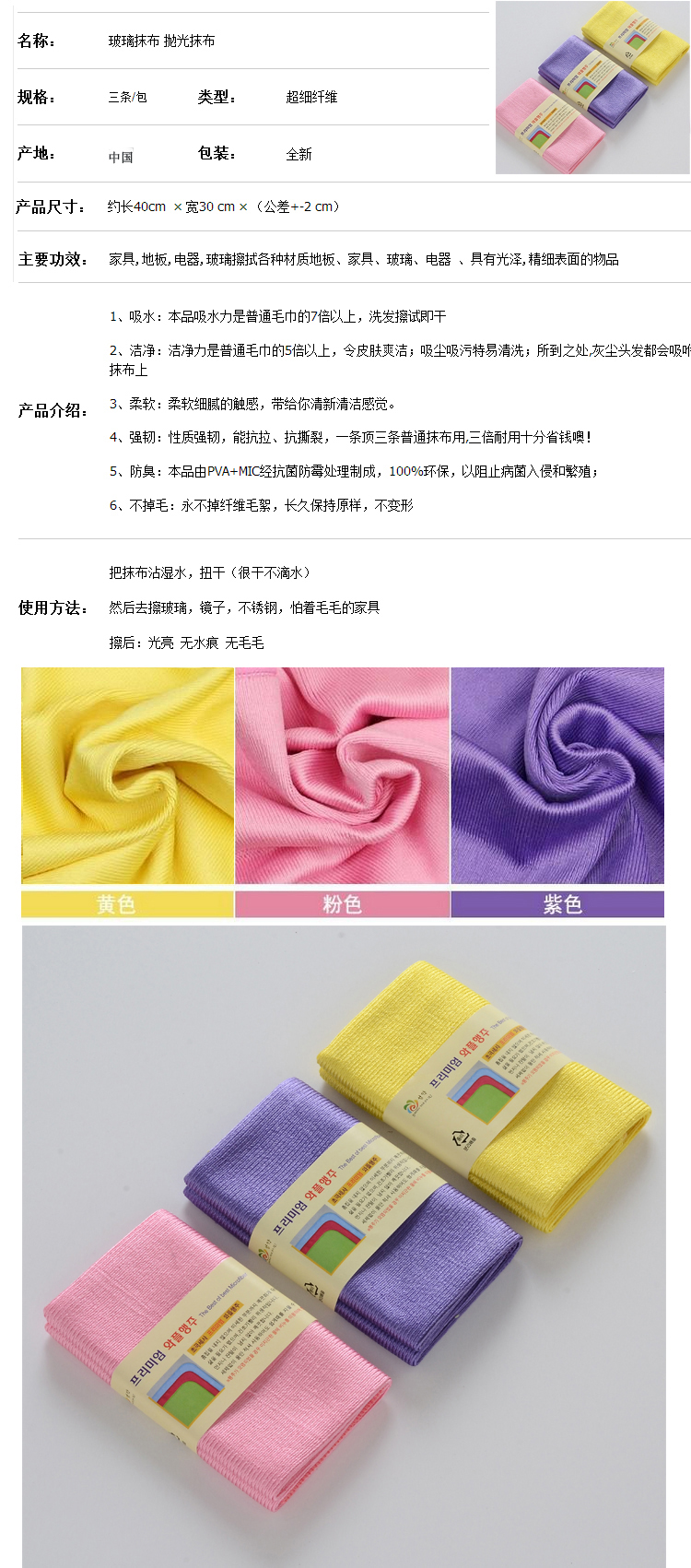 韩国3P高档玻璃抹布 kr-16613C