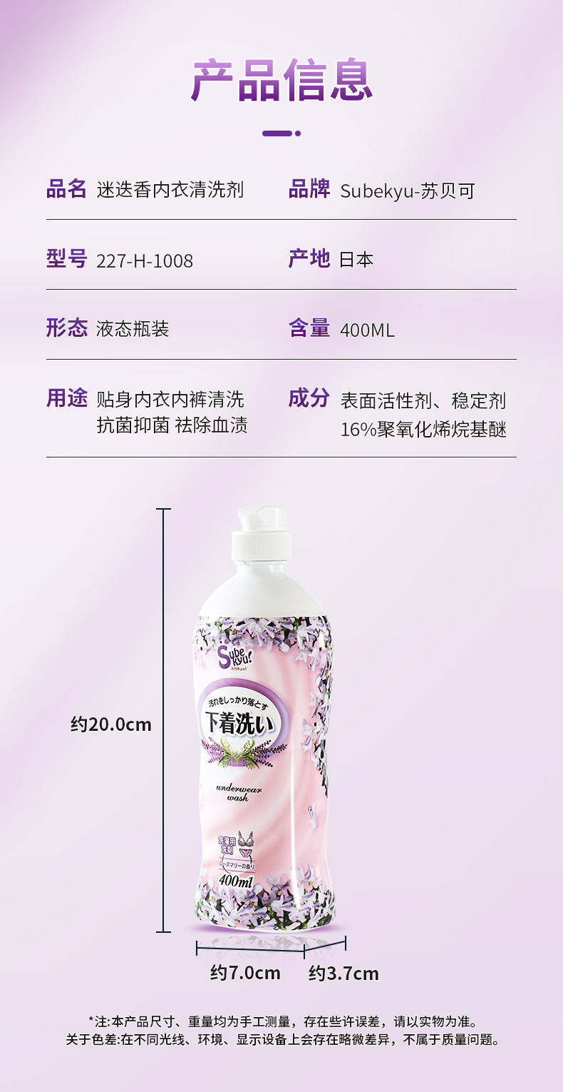 材质:表面活性剂(16%聚氧化烯烷基醚)、稳定剂